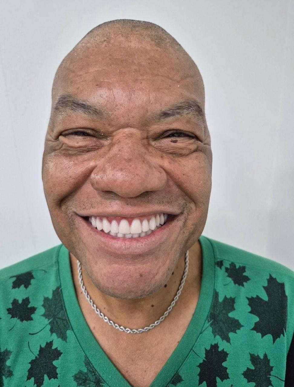 "Usava prótese há 14 anos. Não comia carne, não comia fruta dura, não sorria nas fotos. Hoje como uma espiga de milho inteira. Minha neta só agora tá me conhecendo sorrindo."Seu Raimundo, 64 anos Caminhoneiro · Paciente em Campinas